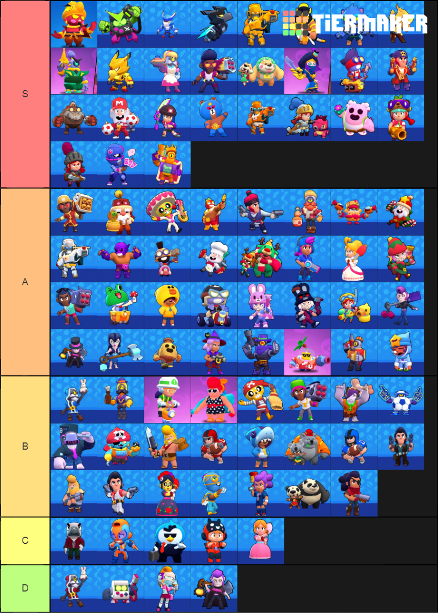 Brawl stars 2020 template january. Brawl stars at pedroguijarro brawl stars skin tier list. Thats why theres a tier list for each game mode brawl stars offers and you cant simply take one brawler for everything you need to pick 2 3 brawlers that you will focus on. Made with tier list maker. Max who is being added into the s tier for brawl ball with her run and gun star power. Brawl tier list 2020.